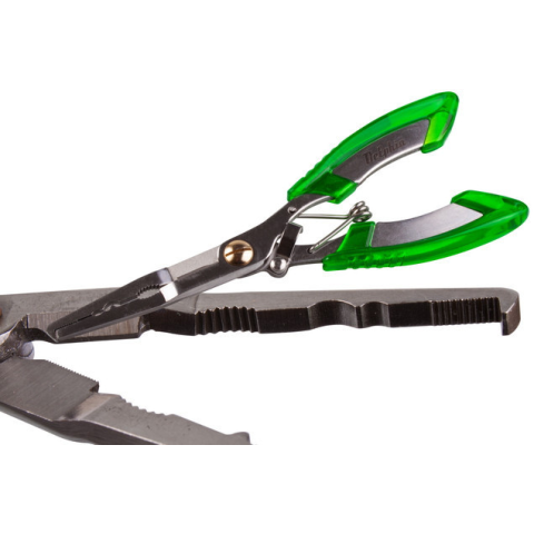 Professionalis fogó, olló, karika nyitó - horgászatra kihegyezve Rozsdamentes acélból készült multifunkcionális horgászfogó. A fogó speciálisan fonott horgászzsinórok vágására szolgál beleértve az aramid szálat (kevlar szál). A kés belső részén találha