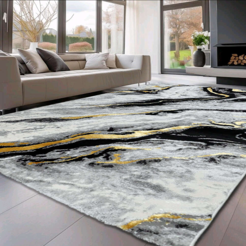 Modern Szürke Szőnyeg Arany Mintával - Stílus és Kényelem Otthonában ✨ Ez a modern szőnyeg tökéletes választás, ha egyedi és stílusos kiegészítőt keresel otthonába. A szürke alapon megjelenő arany minta elegáns megjelenést kölcsönöz a szőnyegnek, ame...