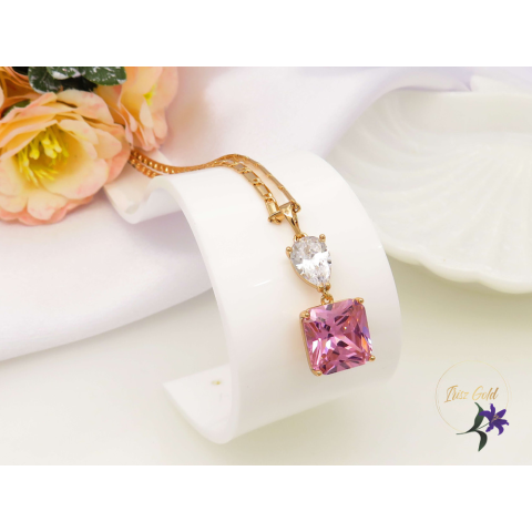 1 kép Deniza antiallergén nagyköves medálos nyaklánc rózsaszín,fehér-18K