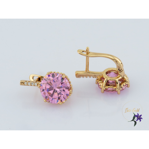 1 kép Denizza antiallergén rózsaszín nagyköves fülbevaló-18K