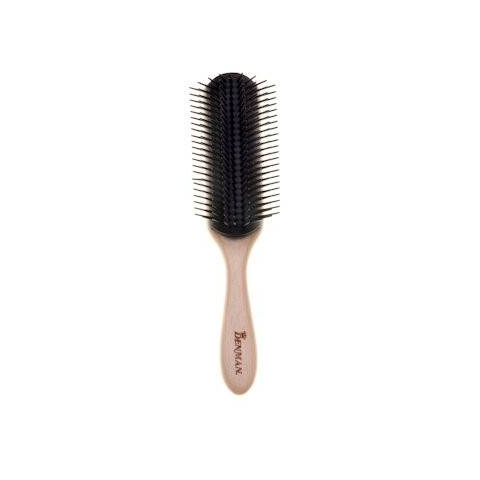 Nagyméretű 9 soros hajformázó kefe műanyag sörterésszel. Bükkfa kefe test. Antisztatikus gumi párnázattal.