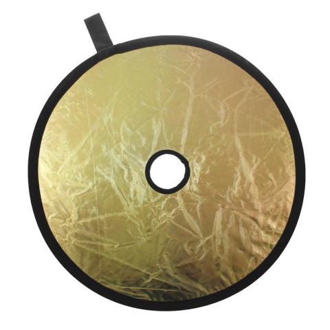 Kettő az egyben derítőlap, középen kör alakú lyukkal, aminek segítségével a derítőlapot közvetlenül az objektívre teheted, így szemből derítve a fotó alanyát, tárgyát. Ezüst és arany színű. 6-8 cm átmérőjű a lyuk a közepén. Fekete tokban szállítjuk.