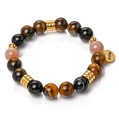 Desert Storm – Ónix achát, napkő és tigrisszem ásvány karkötő dobozban