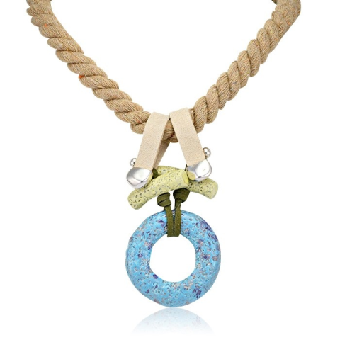 Egyedi design ékszer Anyagból, zsinórból, fából. A nyaklánc hosszúsága állítható 42-48 cm, medál mérete 6 x 8 cm.