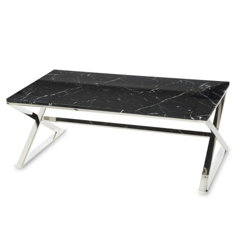 1 kép Design ezüst fém dohányzóasztal, márvány hatású asztallap 45x120x60cm