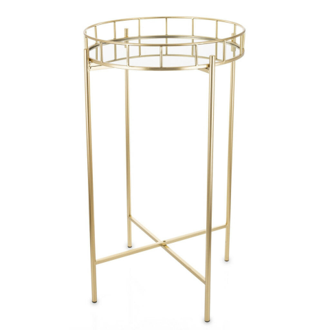 Elegáns Aranyszínű Fém Asztalka Tükrös Lappal ✨ Ez az elegáns aranyszínű fém asztalka tükrös asztallappal tökéletes kiegészítője lehet otthonodnak. Stílusos designjával és praktikus méretével bármelyik helyiségben jól mutat. Főbb jellemzők: Stíluso...