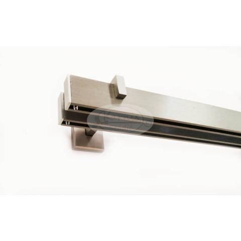 A 2 sínes inox (szálcsiszolt ezüst) rövid tartós design profilkarnis szett tartalma: - 2 db inox színű belső sínes alumínium profil a kiválasztott hosszúságban - 2 pár inox színű fém végzáró (Az ablakhoz közelebb lévő, hátsó vágzáró mindig 2 mm-es, az el