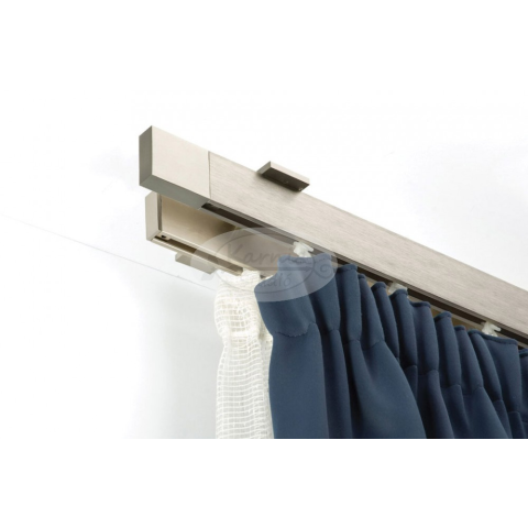A 2 sínes matt ezüst színű mennyezeti Vario tartós design profilkarnis szett tartalma: - 2 db matt ezüst színű belső sínes alumínium profil a kiválasztott hosszúságban - 1 pár Simple végzáró (hossza: 2 mm) + 1 pár Simple vagy Square (40 mm-es) végzáró (v