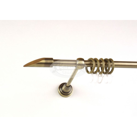 A DETROIT óarany színű 240 cm-es, 1 rudas fém karnis szett tartalma: 1 db 240 cm-es óarany színű, 16 mm átmérőjű fém karnisrúd 2 db Detroit típusú óarany színű fém karnis végzáró 3 db falra szerelhető fém konzol 24 db óarany színű műanyag függönykarika r