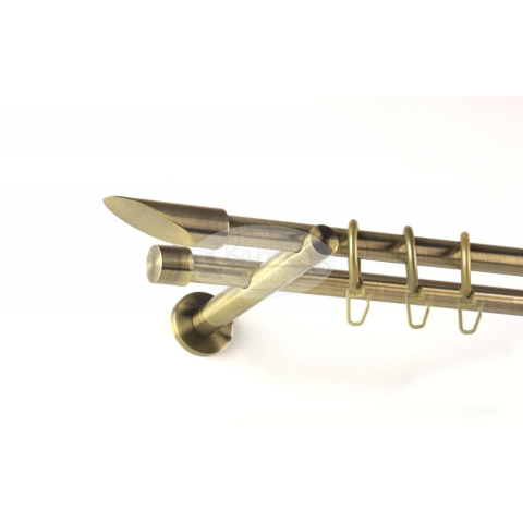 1 kép Detroit óarany színű 2 rudas fém függönykarnis szett modern tartókkal - 160 cm