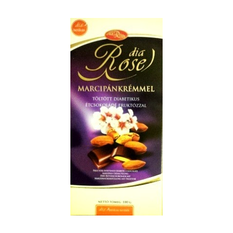 Diabetikus Marcipánkrémmel töltött diabetikus étcsokoládé fruktózzal. Kakaó szárazanyagtartalom a csokoládéban legalább 54%. 100g