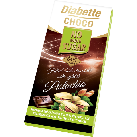 1 kép Diabette pisztácia ízű krémmel töltött étcsokoládé 80g