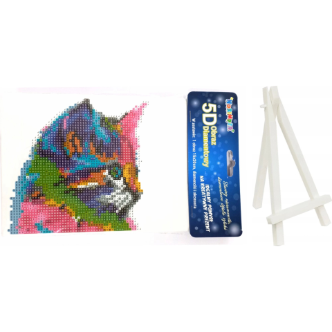Diamantfestés színes cica 15x20 cm állvánnyal