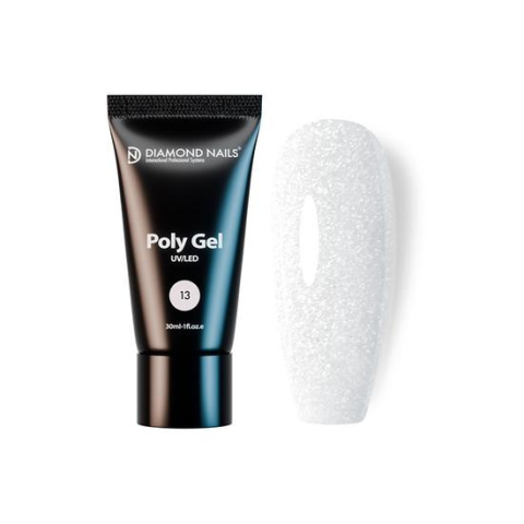1 kép Diamond Nails Poly gel 13 WHITE GLITTER 30ml HEMA- és TPO-mentes