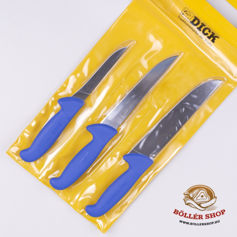 Kiváló összeállítás amely tökéletes társad lehet a disznótor alkalmával! A szett tartalma: 3db kés 1db 18cm-es szúrókés 1db 13cm-es széles pengés csontozókés 1db 21cm-es szalonnázókés DICK böllér késkészlet -8255300 tulajdonságai: A szett tartalma: