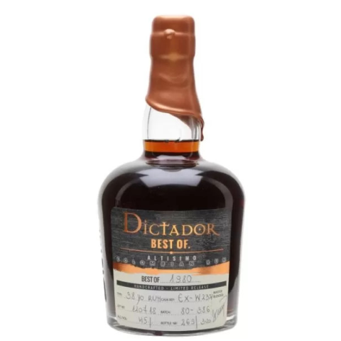 A Dictador elképesztő Best of sorozatának részeként jelent meg ez az 1980-as évjáratú kolumbiai rum.A „Best Of” kínálat értékes italai a Dictador gyűjteményének legjobb és legrégebbi hordói közül válogatott keverékek, amelyek a lepárló megnyitása óta, imm