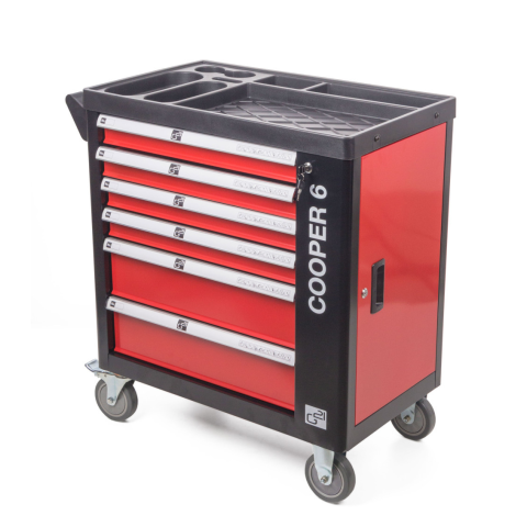 Dielenský vozík Cooper 6, černý Nagy tárolóhely A G21 Cooper 6 műhelykocsit úgy terveztük, hogy a lehető legtöbb műhelyszerszám és tartozék elférjen benne. A hat belső fiókban és az oldalsó szekrényben helyet talál a csavarhúzók és fogók, fúrógép