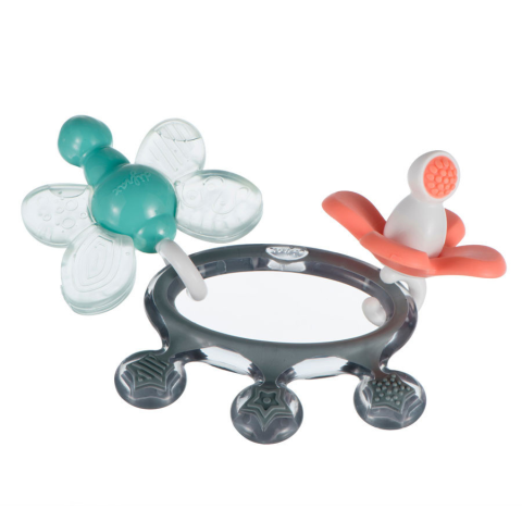 A vidám rágóka segít a fogzás időszakában, maszírozza a kicsi ínyét és enyhíti a fájdalmat. Ezáltal hozzájárul az álkapocs és szájüreg megfelelő fejlődéséhez. Ez a kis korona formájú rágóka néhány színes részből ál, melyeket gond nélkül külön tud választa
