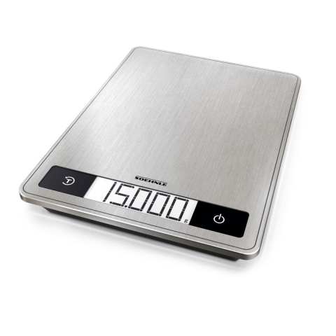 digitális konyhai mérleg extra nagy rozsdamentes acél mérőfelülettel (24 x 17,5 x 1,6 cm), sima üveg mérőfelület könnyen karbantartható és tisztítható, nagy, megvilágított LCD kijelző (22 mm), mérleg funkció, max. 100 cm teherbírás 15 kg, mérési pontosság 1 g, anyag: Biztonsági üveg, könnyű használat, akasztási lehetőség, gyermekbiztonsági elemfedél, elem 2 x 1,5 V, érintésérzékelő két érzékelővel; Digitális konyhai mérleg extra nagy rozsdamentes ac