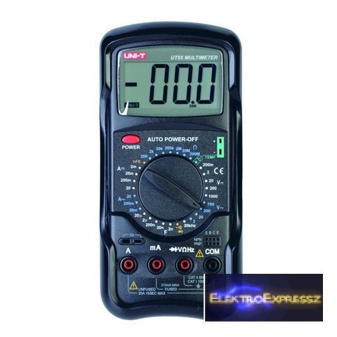 Digitális multiméter, UT55 DC feszültség: 0.2-1000V AC feszültség: 750V 2 DC Áram: 2 mA-20A AC Áram: 2 mA - 20A Ellenállás: 200-20M Kapacitás: 2NF-20uF Frekvencia: 20kHz dióda teszt Tranzisztor teszt Szakadás vizsgálat