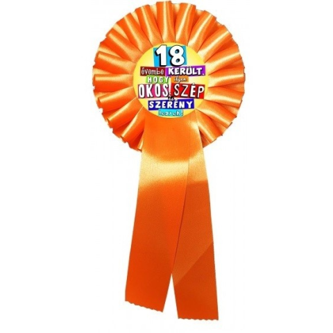 Díjszalag születésnapra, 18...évembe került, hogy ilyen okos, szép és szerény legyek. Számok: 18, 20, 25, 30, 35, 40, 45, 50, 55, 60, 65, 70. A megfelelő számot kérem, írja a Megjegyzés részbe! Mérete: kokárda átmérője 11 cm, szalaggal együtt 26 cm