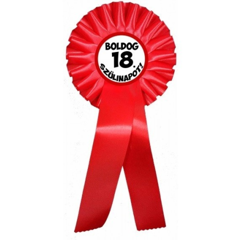 Díjszalag születésnapra, Boldog 18.....szülinapot! Számok: 18, 20, 25, 30, 35, 40, 45, 50, 55, 60, 65, 70. A megfelelő számot kérem, írja a Megjegyzés részbe! Mérete: kokárda átmérője 11 cm, szalaggal együtt 26 cm