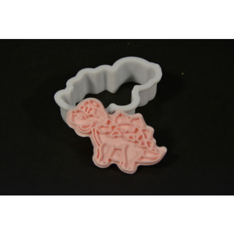 A tészta kiszúrás után nem mozdítjuk el kiszúrt formát, így szépen mintázható lesz a dinó süti