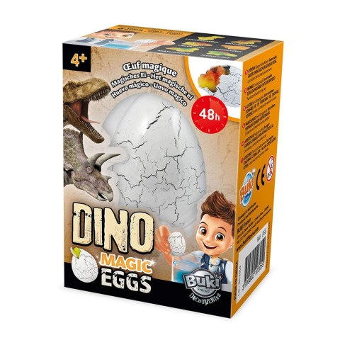 Gyűjthető tojás a Buki márkától Tedd a varázstojást a vízbe és várj 48 órát, hogy meglásd melyik dinó kel ki belőle! 6 fajta dinoszaurusz gyűjthető össze: Triceratops, Tyrannosaurus, Brachiosaurus, Spinosaurus, Stegosaurus és Ankylosaurus.A doboz mérete: