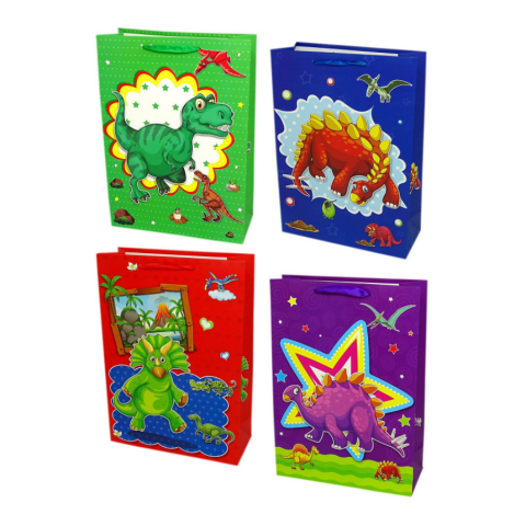 Ezeket a tasakokat különféle aranyos dinók díszítik.