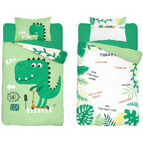 méretei: 100X135cm+40X60cm 100% pamut mosási hőmérséklet bőrbarát anyag rejtett cipzáras záródás Oeko-Tex Standard 100 minősítés mi, mit jelent? kattints ide Nagyon aranyos dínós 2 részes gyermek ágyneműhuzat garnitúra, ami kiváló minőségű 100% pa