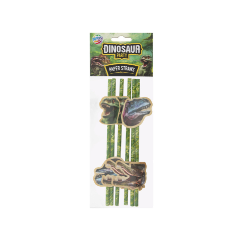 Dínós papírszívószál, 19,5 cm, 6 db