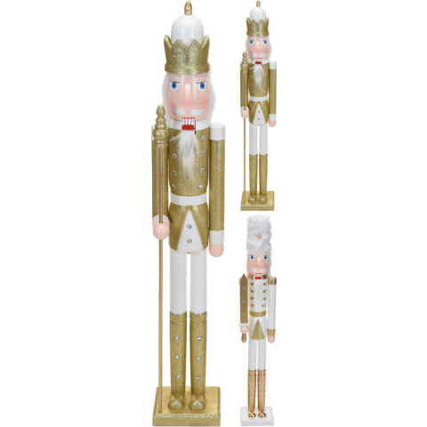 Elegáns Arany Diótörő Figura - 106 cm 👑 Varázsolj ünnepi hangulatot otthonodba ezzel a lenyűgöző, 106 cm magas arany diótörő figurával! Kétféle változatban elérhető, melyek ragyogó díszítéseikkel és részletgazdag kidolgozásukkal emelik az ünnepi deko...