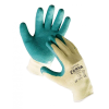 Pamut/poliészter keverékből készült, természetes latexbe félig mártott, kötött, varratmentes kesztyű csúszásgátló kikészítésű tenyérrel és ujjakkal, valamint rugalmas kötött mandzsettával. Méretek: a női 8 (zöld), a férfi 10 (szürke)