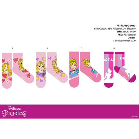 1 kép Disney Hercegnők gyerek pamut normál zokni - 4 pár/csomag - 27-30