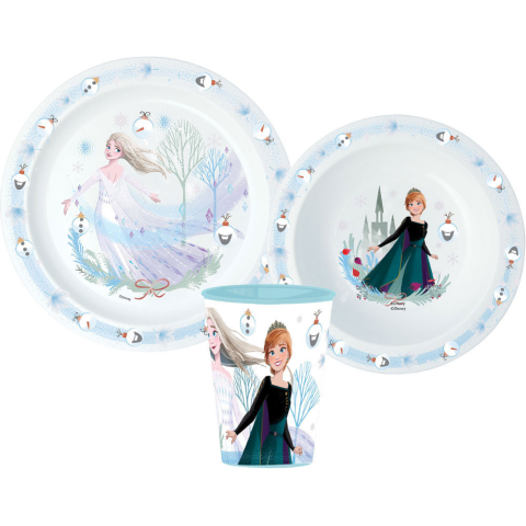 Disney Jégvarázs Royally Cool Karácsonyi étkészlet, micro műanyag szett, pohárral 260 ml