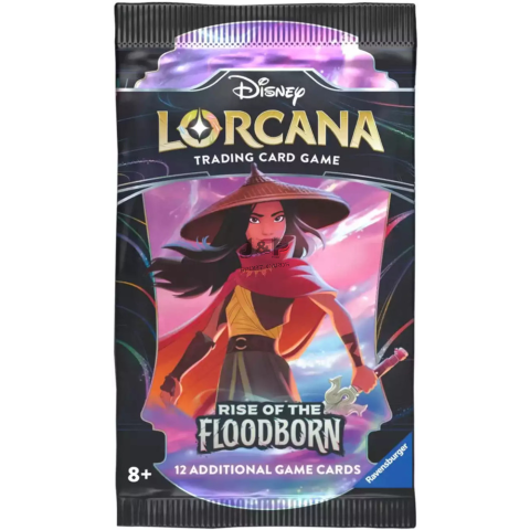 Minden Disney Lorcana: Rise of the Floodborn Booster Pack csomag tartalmaz: - 6 common kártya - 3 uncommon kártya - 2 rare, super rare vagy legendary kártya - 1 foil kártya (random rarity level) A kezdő pakliktól eltérően az booster csomagok tizenkét v