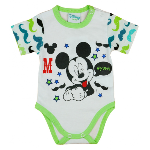 Készülj fel, mert a kisfiad stílusosan nyomulhat a parkban ebben a zöld, rövid ujjú bababodyban, melyen a vidám, bajszos Mickey egér mosolyog vissza ránk. Az eredeti Disney termék garantálja a minőséget és a tartósságot. Az 100% pamut anyag biztosítja a k