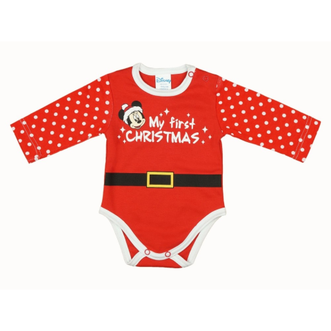 Olvadjon bele a karácsonyi hangulatba ezzel a hosszú ujjú Mickey vagy Minnie egér mintás kombidresszel. Eredeti Disney termék, mely piros színével és kedves karácsonyi mintázatával minden baba szekrényének ékessége lesz. A kombidressz 100%-ban pamut anyag