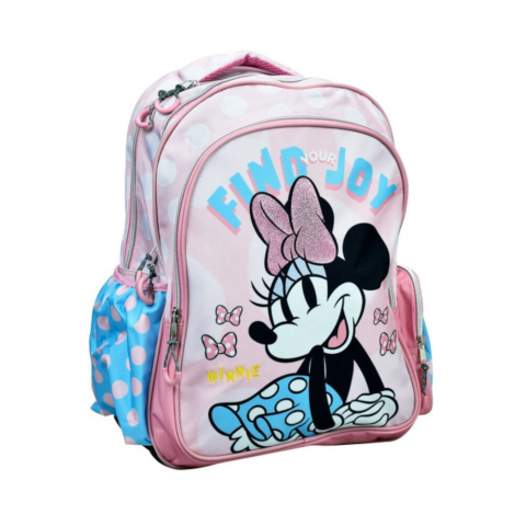 Disney Minnie Iskolatáska, táska Méret: 43x30x17 cm. Három nagy cipzáras tárolóval rendelkezik, illetve két oldalsó kis zsebbel. Pántjai állíthatóak, ergonomikus.