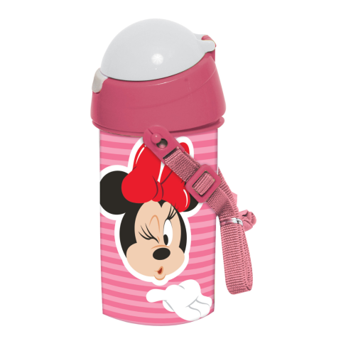 Disney Minnie kulacs, sportpalackPattintós kupakkal, akasztóval.Anyaga: műanyagMéret: 500 ml