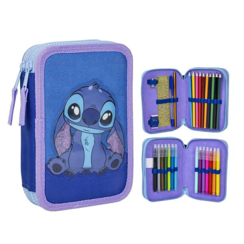 Disney Stitch - 2 emeletes, töltött tolltartó 2700001141A két szintes kialakításnak köszönhetően rendezetten és könnyen elérhetően tárolhatók a ceruzák, tollak és egyéb kiegészítők.Főbb jellemzők:Méret: 12,5 x 19,5 x 4,5 cm – kompakt, mégis tágasKialakítás: 2 emeletes, cipzárral záródóAnyag: 90% poliészter / 10% PVC – strapabíró és könnyen tisztíthatóTartalom:10 db színes ceruza14 színes filctoll1 db golyóstoll 1 db grafit ceruza1 db vonalzó1 db heg