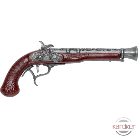 Kovás díszpisztoly működő mechanikával. Lövés leadására nem alkalmas, csak dekorációs tárgy. Kovás díszpisztoly működő mechanikával. Lövés leadására nem alkalmas, csak dekorációs tárgy. Dísz pisztoly 64129 - specifikáció: Anyaga: fa és fém ötvözet Ho