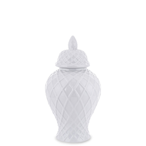 1 kép Díszes fehér dombormintás amfora tároló kerámia váza fedéllel 37x19x19cm