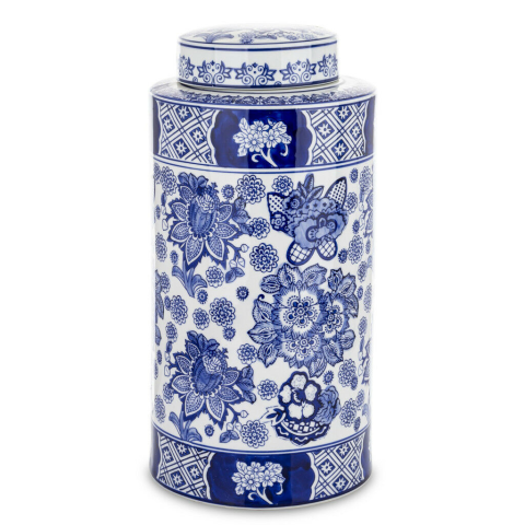 1 kép Díszes kék-fehér festett virágmintás fedeles kerámia tároló amfora 39x18x18cm