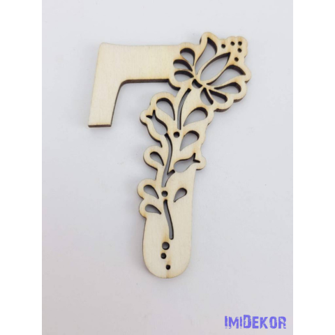 1 kép Díszes natúr lézervágott fa szám 6,5x5cm - 7