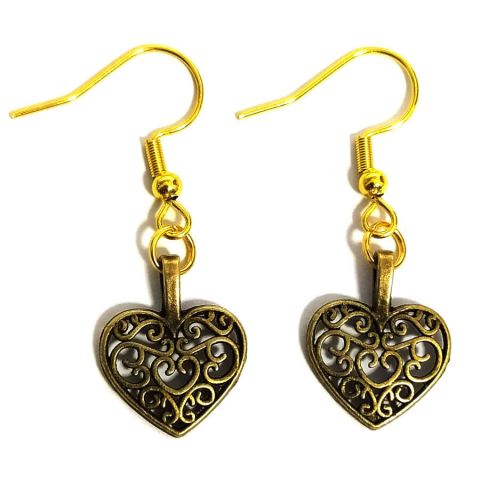 Díszes szív (3) fülbevaló, választható arany vagy ezüst színű akasztóval