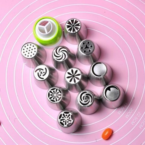 Torták, muffinok díszítéséhez elengedhetetlen eszköz, amelyhez egyszerre töbféle színű krémet is lehet használni. Talpmérete 4 cm, magassága 4 cm, fejrésze 2 cm