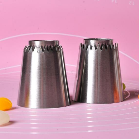 Nagyszerűen alkalmazható torták díszítéséhez, habcsókok készítéséhez. A két fej belső átmérőjében különbözik. Talpátmérője 4.5 cm, magassága 5 cm, minta átmérője 3.5 cm