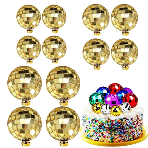 Diszkógömb Tortadísz Beszúró – Arany, 12 db