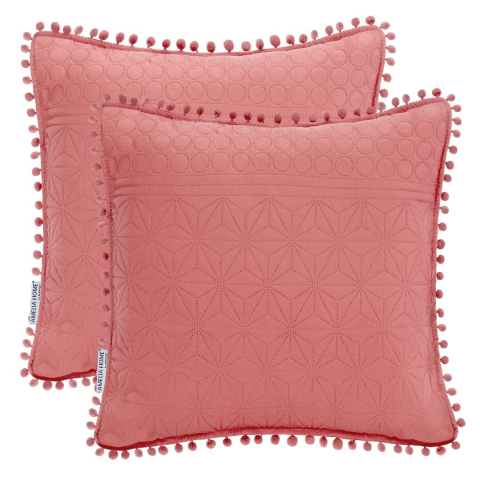 MEADORE rózsaszín díszpárnahuzat pomponokkal - 45x45 cm 🌸 Dobd fel otthonod hangulatát ezzel a stílusos és puha MEADORE díszpárnahuzattal! A rózsaszín szín és a dombornyomott minta elegáns megjelenést kölcsönöz, míg a pomponos szegély játékos és egye...